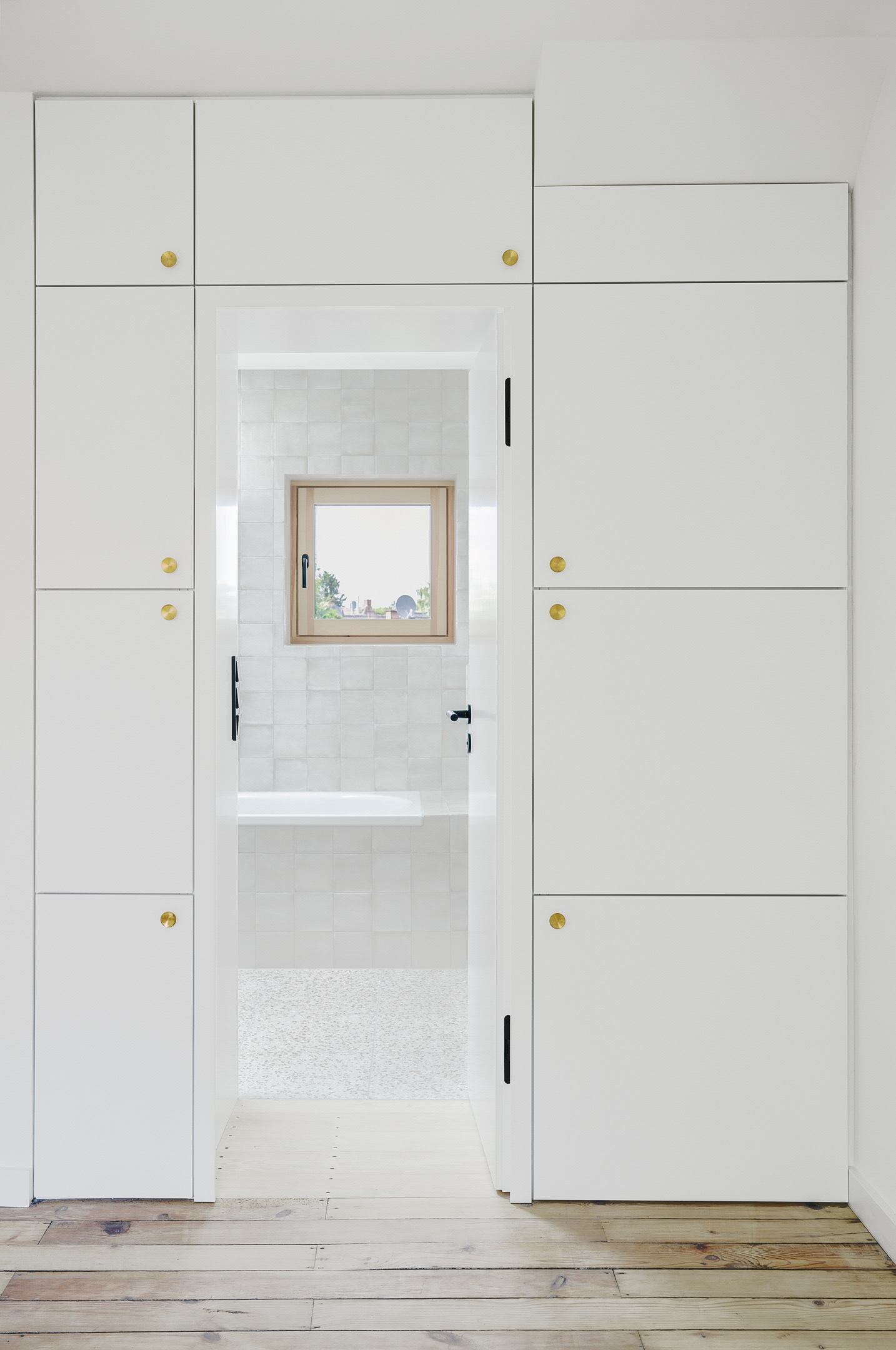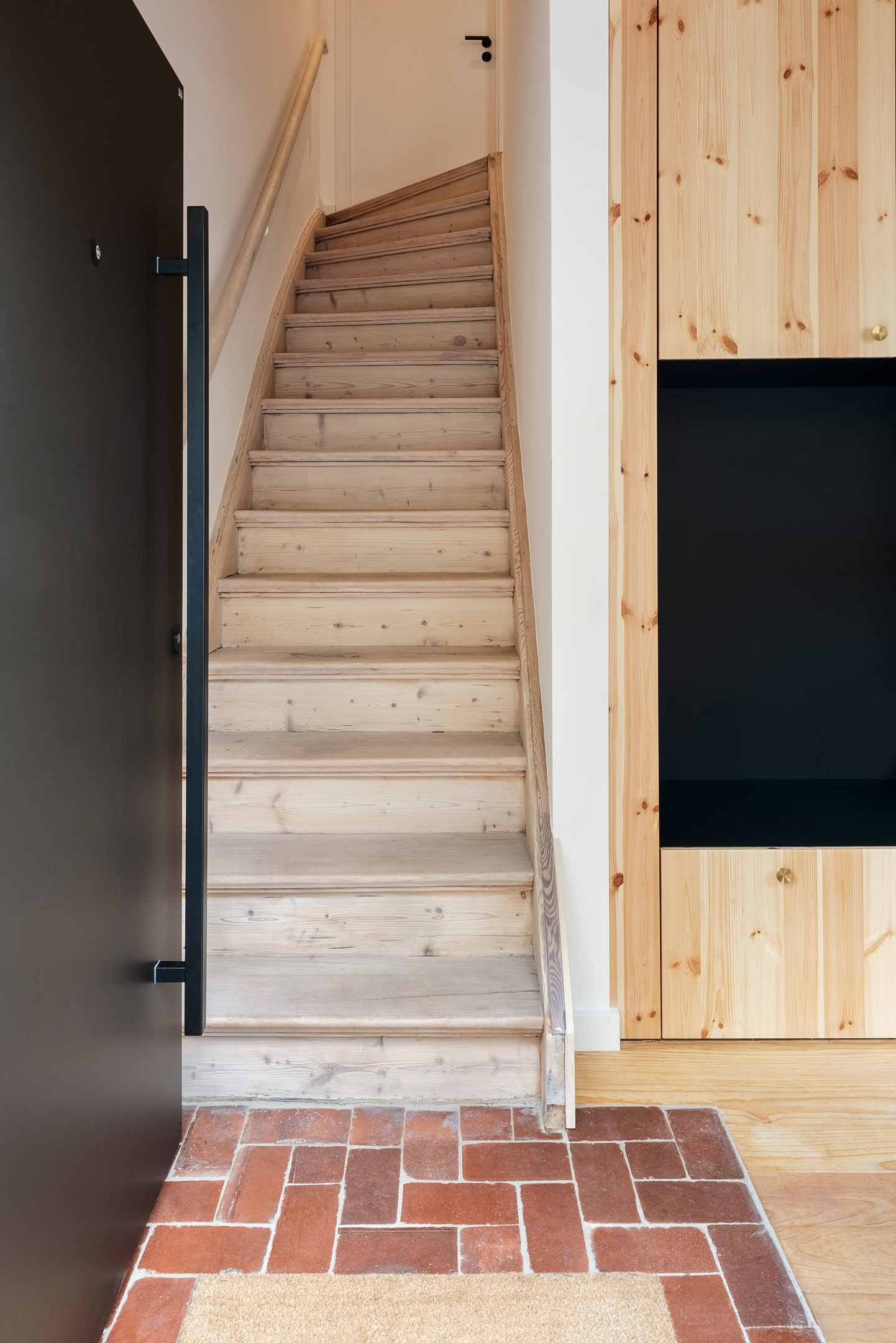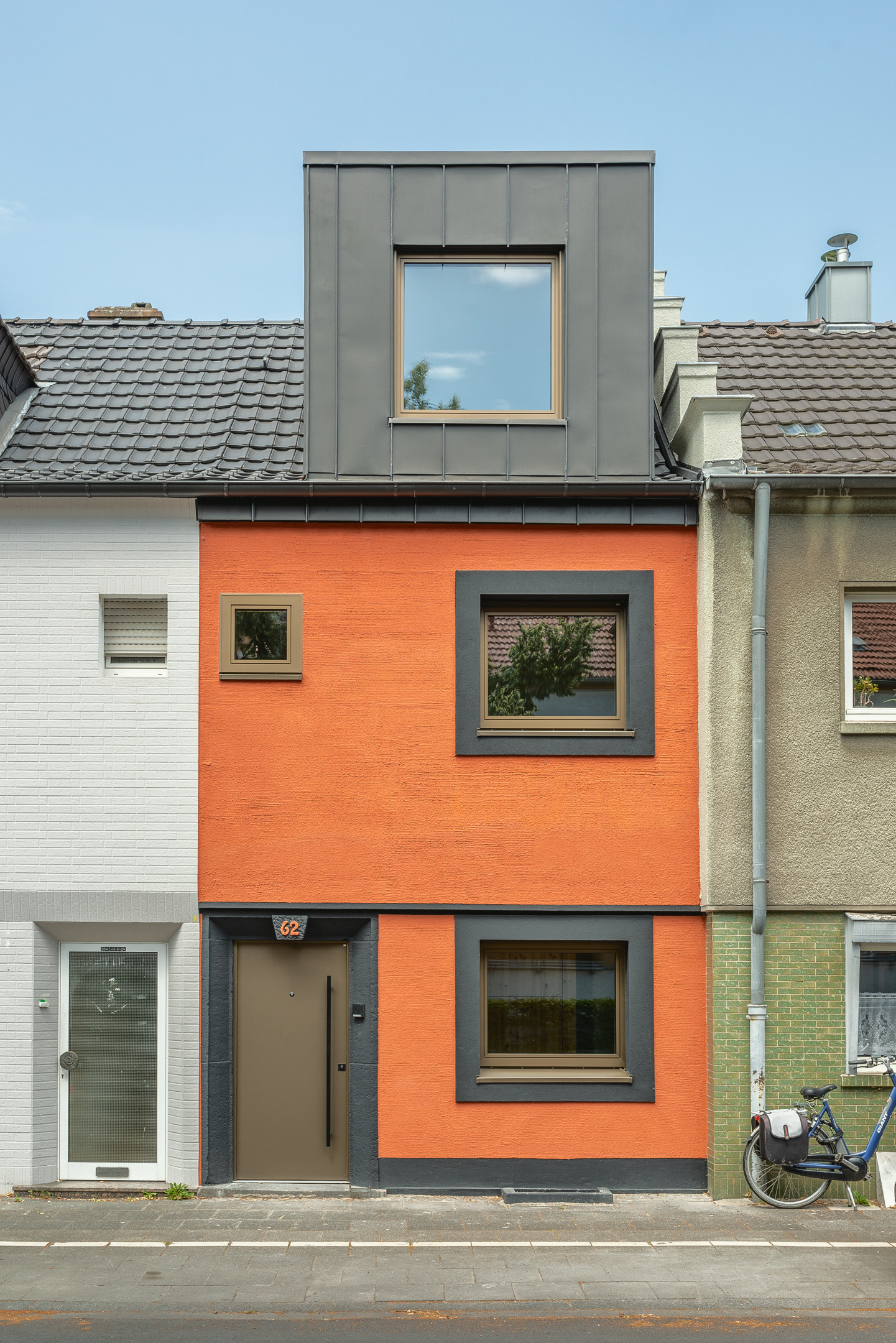 Ein junges Paar wünschte sich eine Modernisierung und Erweiterung ihres über hundert jährigen Wohnhauses, das einst der Großvater gekauft hatte. Im Vergleich zu den benachbarten Reihenhäusern weist das Haus einen hohen Anteil bauzeitlicher Elemente und Substanz auf. Auch wenn der Bau nicht unter Denkmalschutz steht, so werden diese Elemente aufgegriffen, ertüchtigt oder aufbereitet. Die neuen Fenster bleiben im charakteristischen Quadratformat, der Treppengiebel bleibt erhalten.